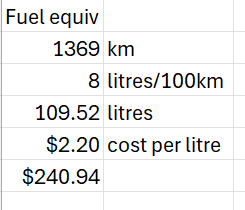 Rough petrol comparison – about 50% more to use petrol